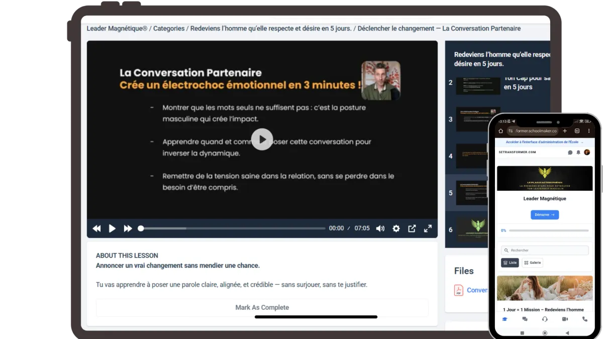 À la place, tu repars avec des actions simples et éprouvées qui recréent respect, admiration et connexion.